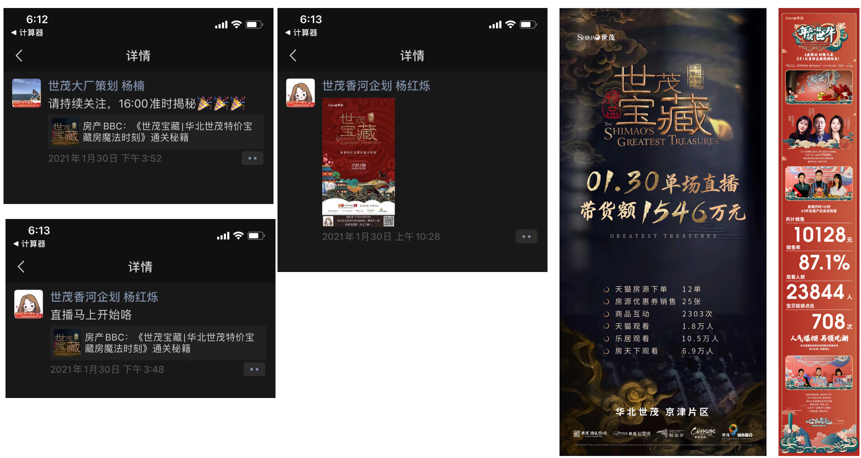 华北世茂京津片区全体员工,大家齐心协力发动传播,瞬间刷爆朋友圈。最终活动信息得到了2.4W次浏览,超额完成直播的引流目标。