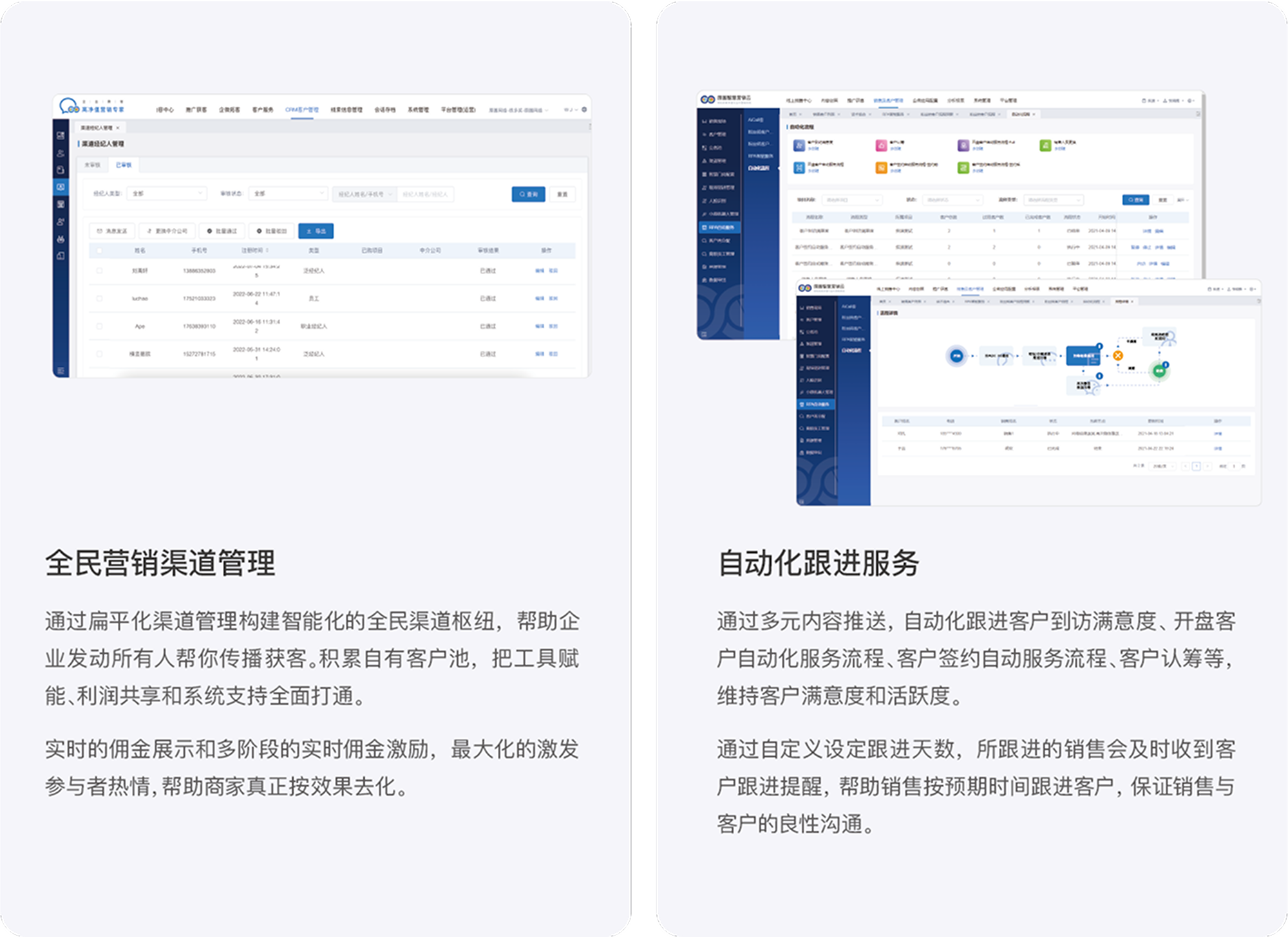 • 客户数据与销售分析高净值企业需要对客户数据和销售数据进行深入分析,以洞察市场趋势、优化销售策略和提升业绩。CRM系统应提供强大的数据分析和可视化工具,帮助企业深入挖掘客户数据中的价值,识别潜在商机,并预测未来销售趋势
